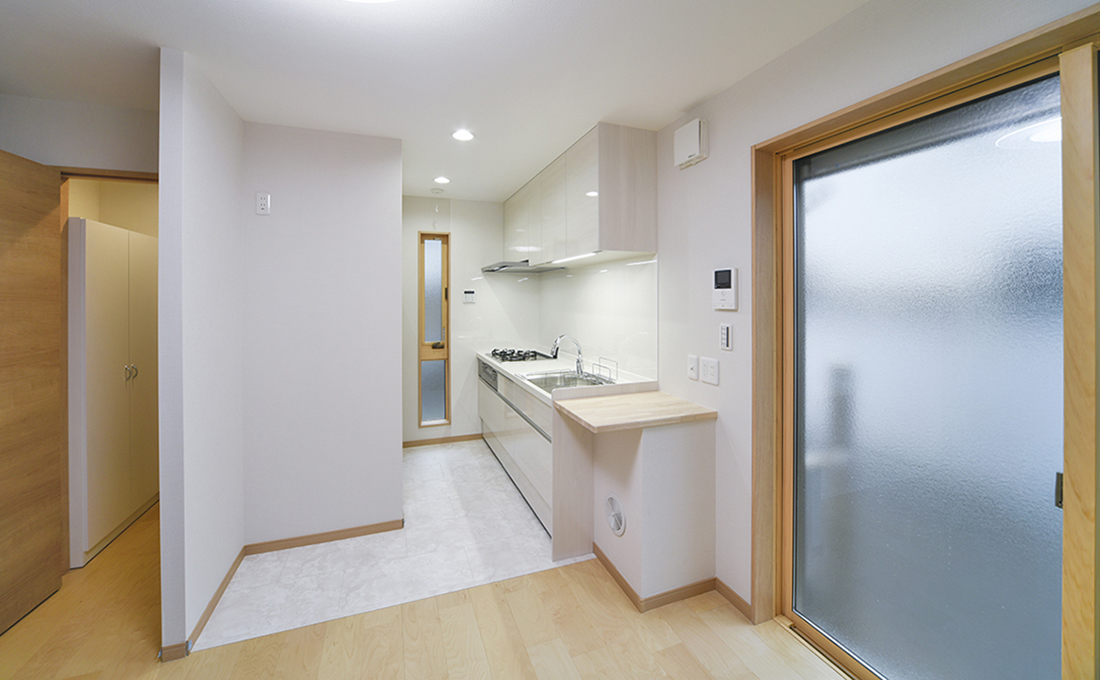 素朴な風合いとぬくもりのカントリー調キッチンが主役の二世帯住宅
