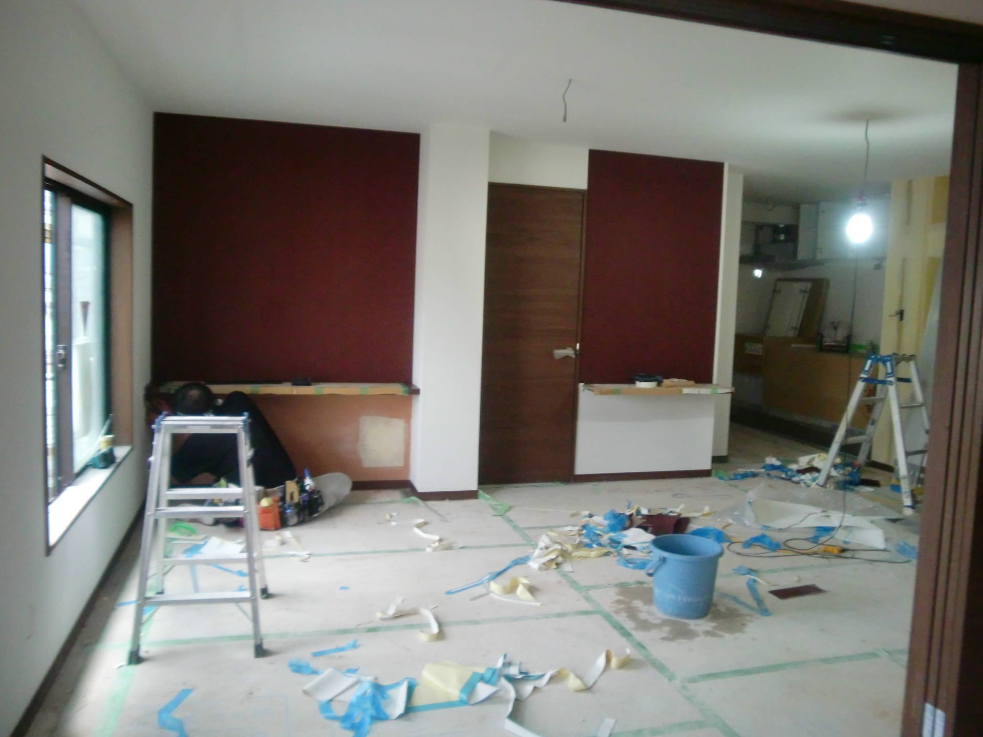Mビル改修工事 クロス工事 2014年9月25日(木) 2階住戸はキッチン取り付けも完了! 今日は3階住戸のクロス工事です。 LDKには濃いエンジの織物風のクロスをアクセントに。 リフォーム一覧に戻る 前の記事へ 次の記事へ 最新の投稿 目黒区I邸 断熱吹付け工事 目黒区A邸 ベタ基礎完成 目黒区A邸 べた基礎耐圧板 コンクリート打設工事 目黒区A邸 べた基礎配筋工事 目黒区I邸賃貸併用住宅 バルコニー防水工事