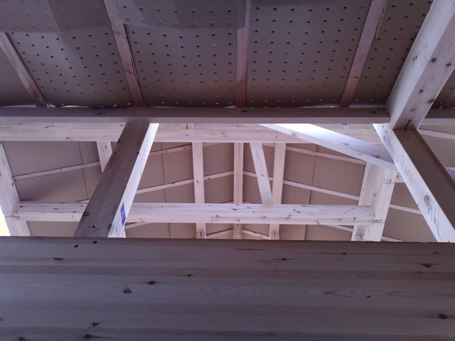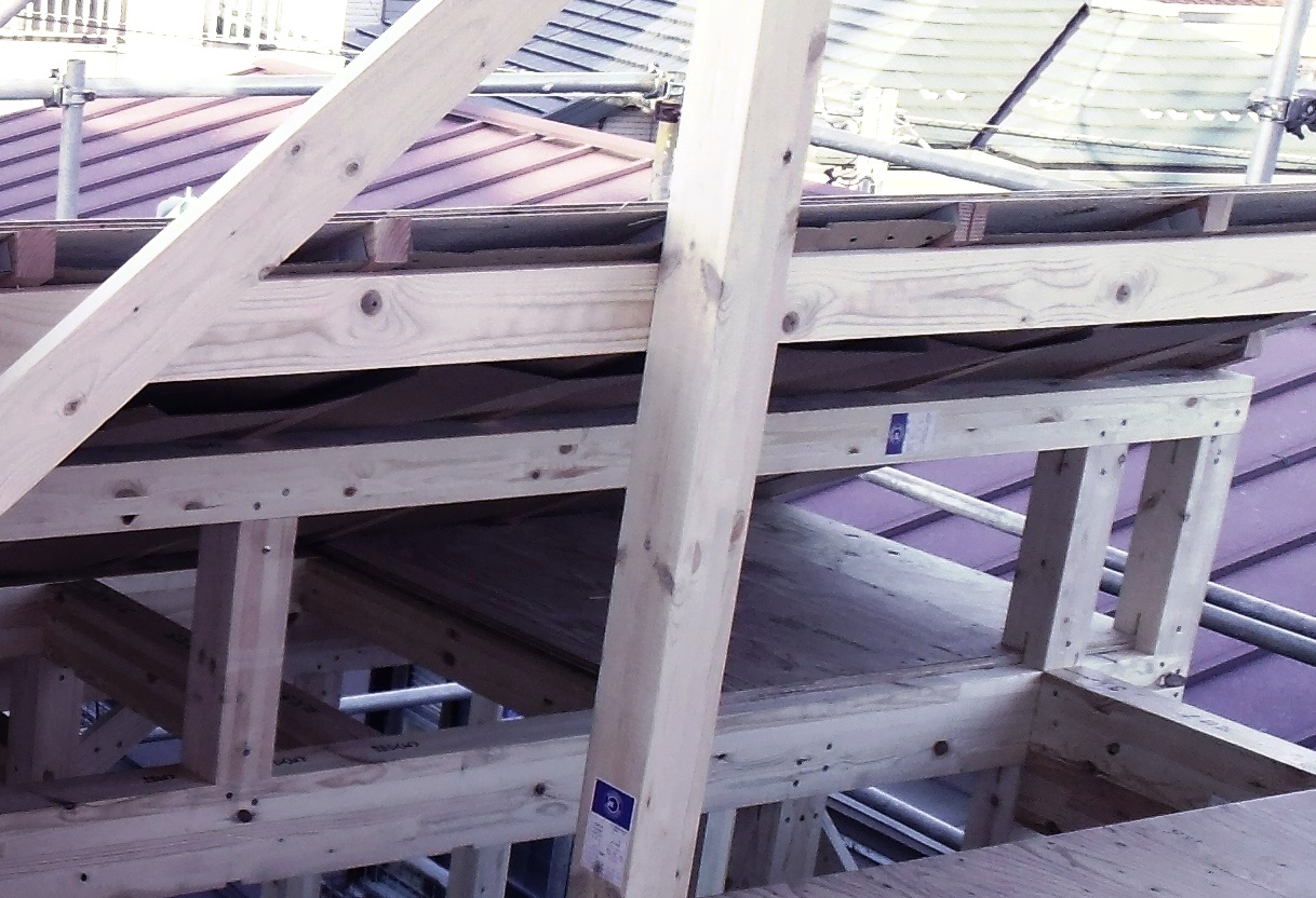 世田谷区M邸 屋根スペーサー 2014年9月30日(火) 屋根を見上げると通気スペーサーが取り付けられているのが見えます。 珍しく断面からみることができました! 屋根下地の野地板の下に空間があいていて、通気層がつくられているのが分かります。 世田谷区M邸共同住宅一覧に戻る 前の記事へ 次の記事へ 最新の投稿 目黒区I邸 断熱吹付け工事 目黒区A邸 ベタ基礎完成 目黒区A邸 べた基礎耐圧板 コンクリート打設工事 目黒区A邸 べた基礎配筋工事 目黒区I邸賃貸併用住宅 バルコニー防水工事