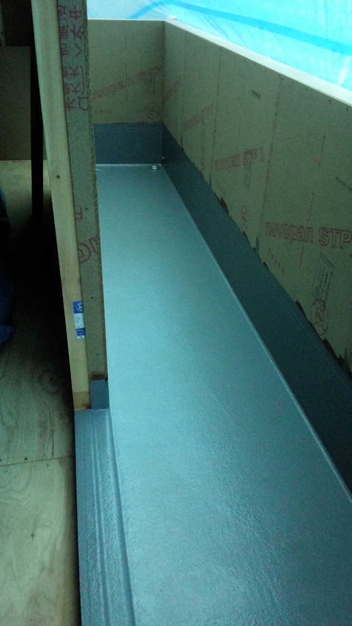 B棟 FRP防水 2014年9月12日(金) バルコニーのFRP防水工事完了です。 サッシの内側までしっかり防水します。 ブライト旗の台A棟・B棟一覧に戻る 前の記事へ 次の記事へ 最新の投稿 目黒区I邸 断熱吹付け工事 目黒区A邸 ベタ基礎完成 目黒区A邸 べた基礎耐圧板 コンクリート打設工事 目黒区A邸 べた基礎配筋工事 目黒区I邸賃貸併用住宅 バルコニー防水工事