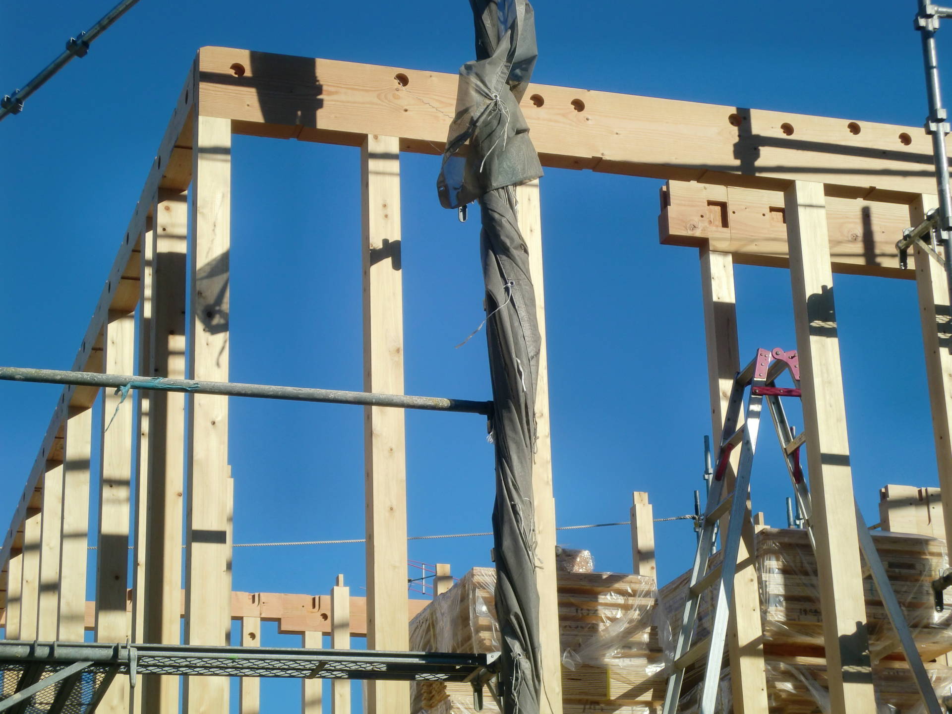 M邸共同住宅 金物工法と在来工法 2014年12月18日(木) 午後になってさらに進みました。当社では木造の場合、金物工法が殆どですが、実は今回の建物は、施主様のご意向で、集成材を金物工法で建築する部分と無垢材を在来工法で組み上げる部分と両方あります。一つの建物に2つの別の工法を併せることはあまりなく、金物を加工する工場と無垢材にほぞ加工する工場も別なので、なかなか一筋縄ではいきませんが、お客様のご要望があれば実現します! 上棟は土曜日の予定。明日は3階部分にかかります。 事業用住宅一覧に戻る 前の記事へ 次の記事へ 最新の投稿 目黒区I邸 断熱吹付け工事 目黒区A邸 ベタ基礎完成 目黒区A邸AP 基礎コンクリート打設完了 目黒区A邸AP 鉄骨土台施工 目黒区A邸 べた基礎耐圧板 コンクリート打設工事