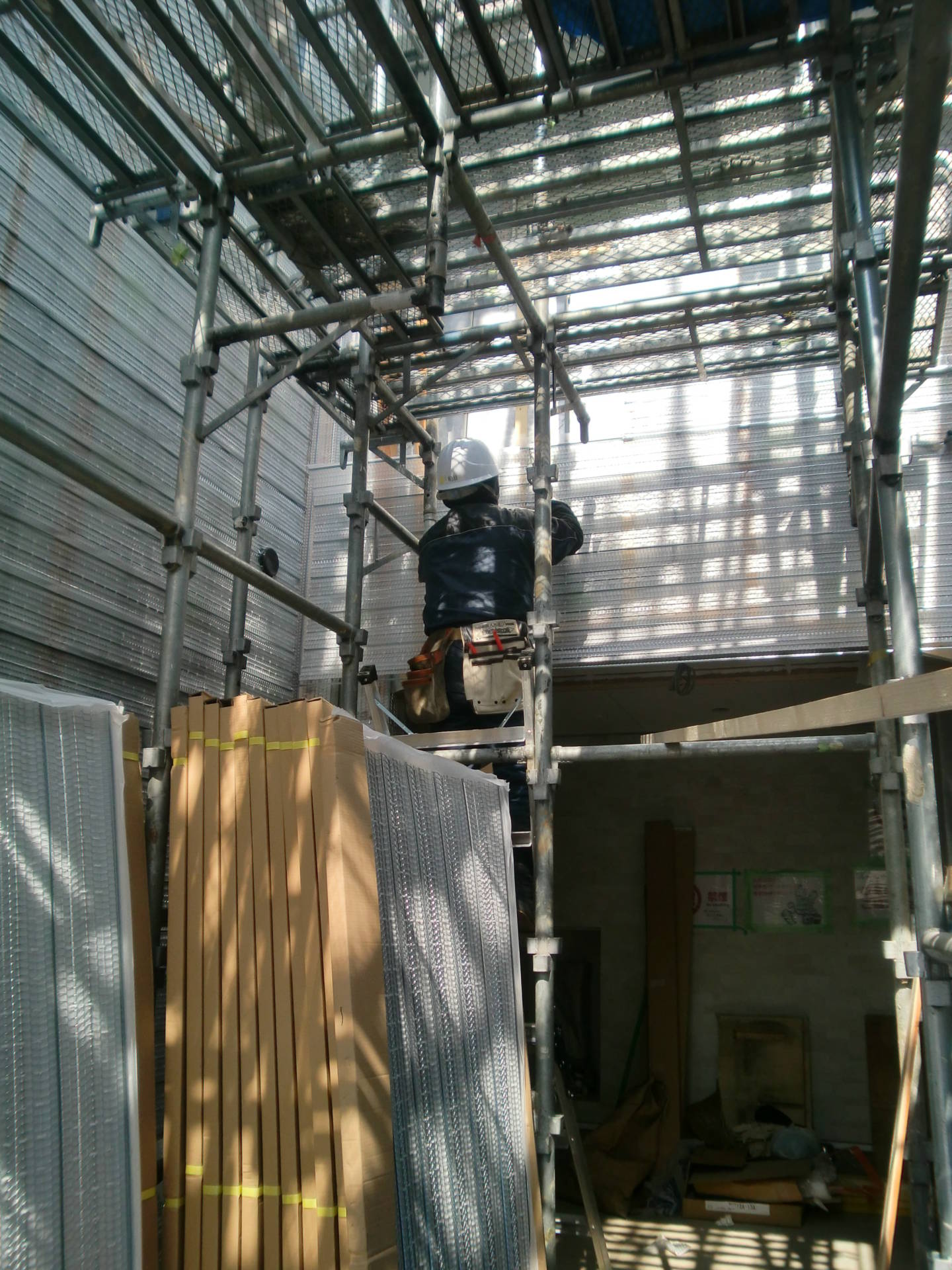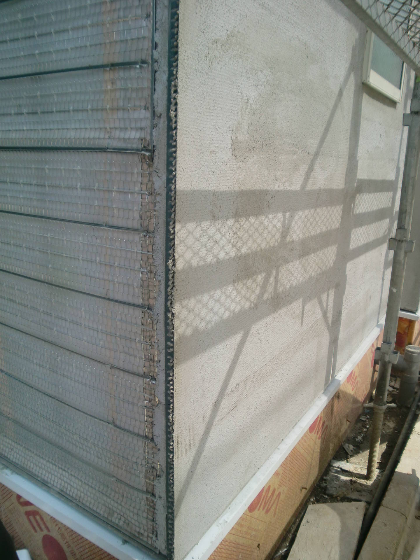 目黒区M邸共同住宅 ラス網 2015年3月16日(月) 引き続きラス網の施工中。画像下方のパネル状になっている網をカットして、タッカー止します。 先日塗装したモルタルもだいぶ乾いて白くなっています。 事業用住宅一覧に戻る 前の記事へ 次の記事へ 最新の投稿 目黒区I邸 断熱吹付け工事 目黒区A邸 ベタ基礎完成 目黒区A邸AP 基礎コンクリート打設完了 目黒区A邸AP 鉄骨土台施工 目黒区A邸 べた基礎耐圧板 コンクリート打設工事