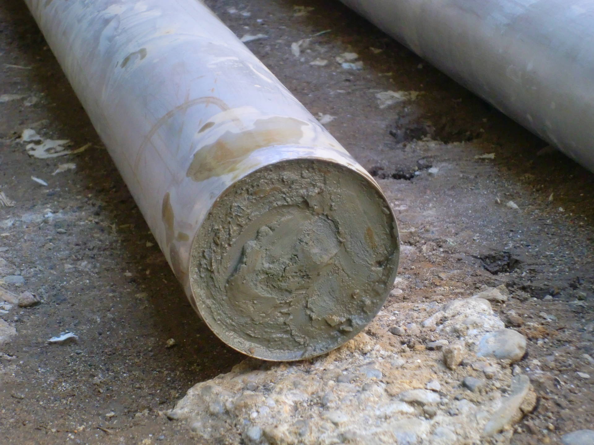 5メートルのほどの深度にある粘土層のサンプルを採取しています。