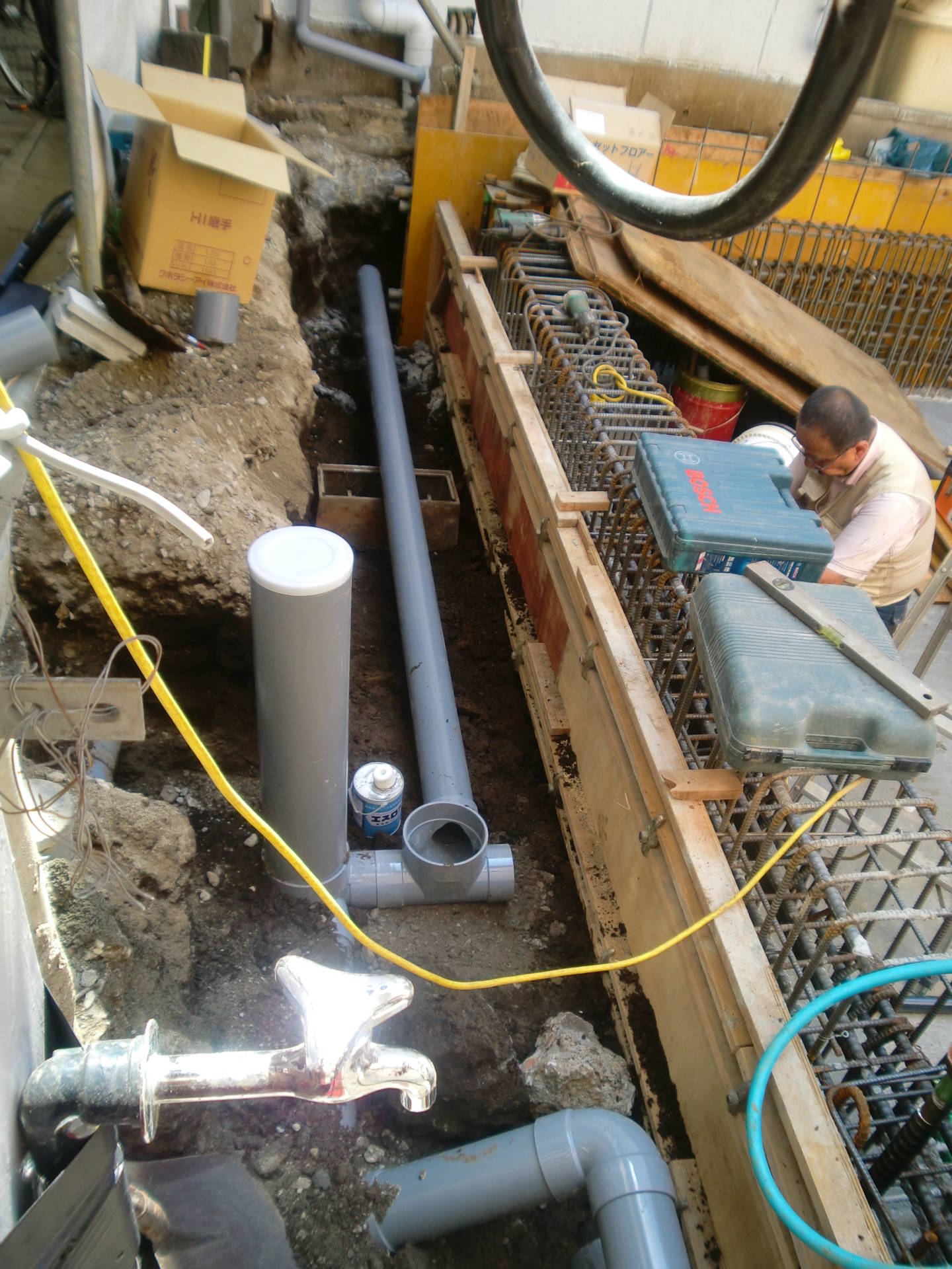 品川区O邸 配管工事 2015年4月23日(木) 耐圧盤のコンクリート打設が完了して、今日は設備工事です。 排水管の取り付けをおこなっています。 事業用住宅一覧に戻る 前の記事へ 次の記事へ 最新の投稿 目黒区I邸 断熱吹付け工事 目黒区A邸 ベタ基礎完成 目黒区A邸 べた基礎耐圧板 コンクリート打設工事 目黒区A邸 べた基礎配筋工事 目黒区I邸賃貸併用住宅 バルコニー防水工事
