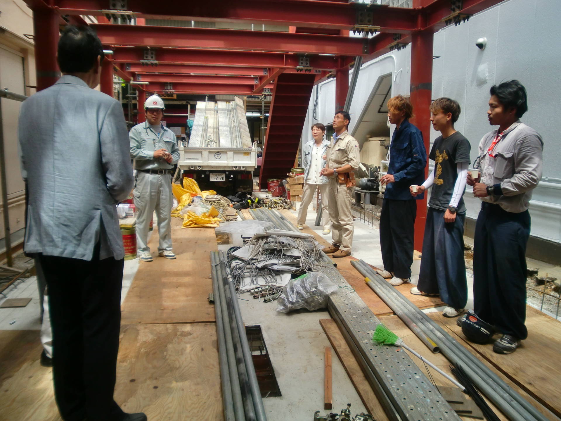 品川区O邸 上棟式 2015年5月25日(月) 本日無事、上棟式が執り行われました。 施主様に建物の四隅のお清めいただき、上棟のお祝いをしました。 職人の方々とも顔合わせをしてねぎらいのお言葉をいただきました。 完成が楽しみです。 事業用住宅一覧に戻る 前の記事へ 次の記事へ 最新の投稿 目黒区I邸 断熱吹付け工事 目黒区A邸 ベタ基礎完成 目黒区A邸 べた基礎耐圧板 コンクリート打設工事 目黒区A邸 べた基礎配筋工事 目黒区I邸賃貸併用住宅 バルコニー防水工事