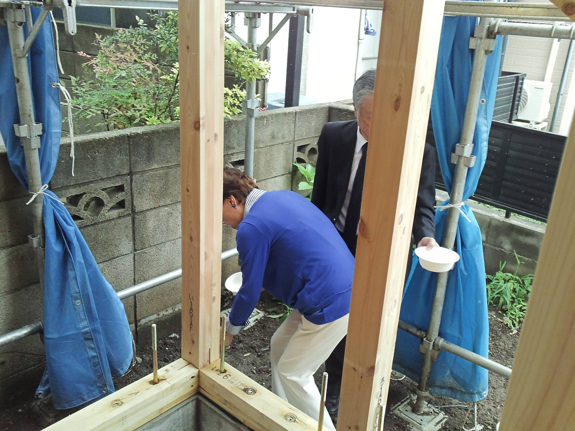 目黒区G邸賃貸併用住宅 上棟です 2015年7月6日(月) 3階の屋根の棟木も収まり、無事に上棟式が執り行われました。 建物の四隅のお清めを行い、完成までの工事の無事を祈ります。 こちらは地下室です。柱が入るまで、鉄骨パイプの補強がはいっています。 事業用住宅一覧に戻る 前の記事へ 次の記事へ 最新の投稿 目黒区A邸 地鎮祭 目黒区A邸AP 地盤改良杭工事 目黒区I邸 基礎立ち上がり打設完了 目黒区I邸 配筋工事 品川区M邸 解体完了しました