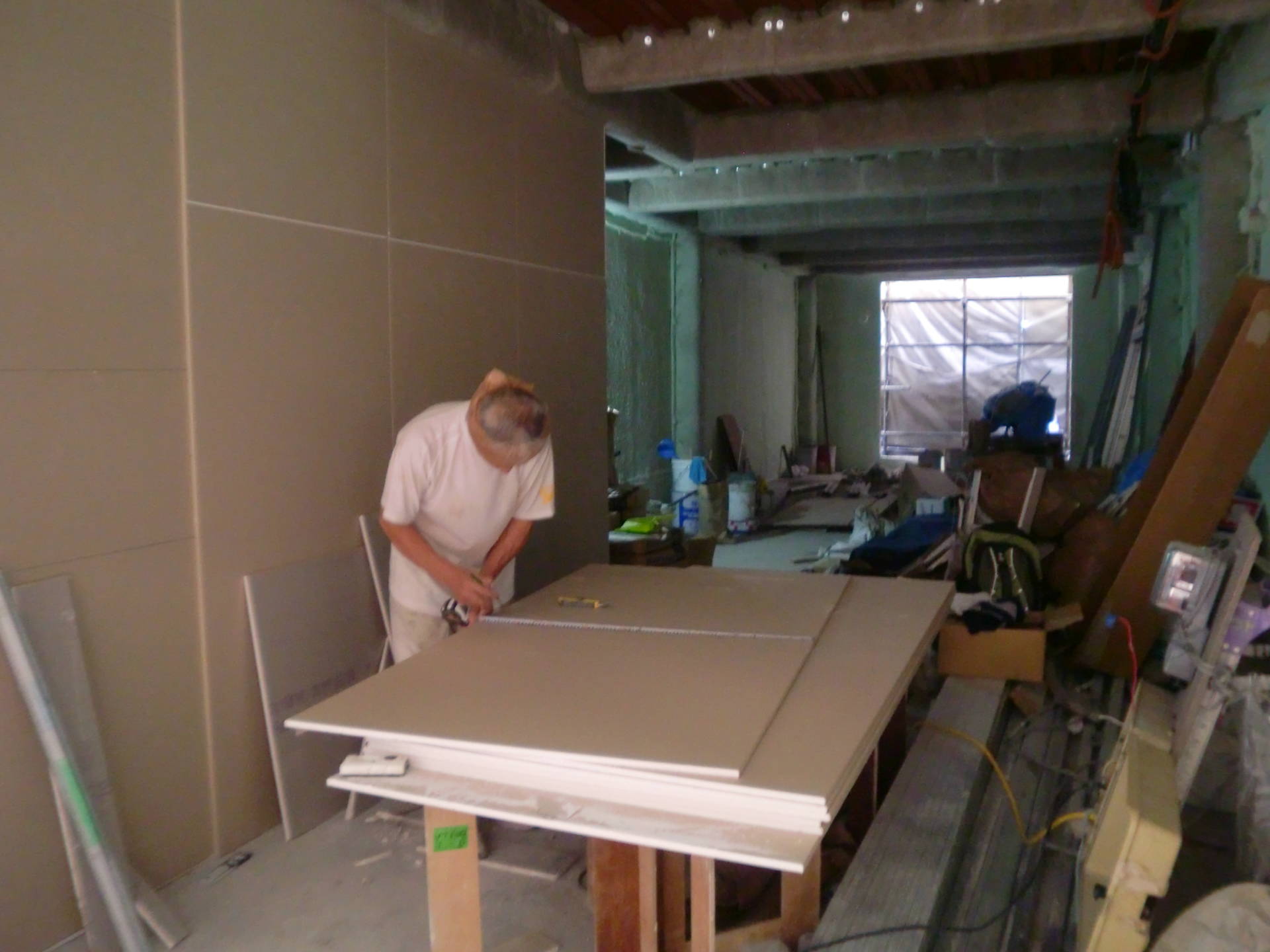 品川区O邸 石膏ボード 2015年7月30日(木) 室内では、断熱材の吹付が終わって、大工さんが石膏ボードをつぎつぎカットして壁にたてかけていきます。 天井や室内の仕切りの骨組みとなる、軽量鉄骨も運びこまれています。 事業用住宅一覧に戻る 前の記事へ 次の記事へ 最新の投稿 目黒区I邸 断熱吹付け工事 目黒区A邸 ベタ基礎完成 目黒区A邸AP 基礎コンクリート打設完了 目黒区A邸AP 鉄骨土台施工 目黒区A邸 べた基礎耐圧板 コンクリート打設工事
