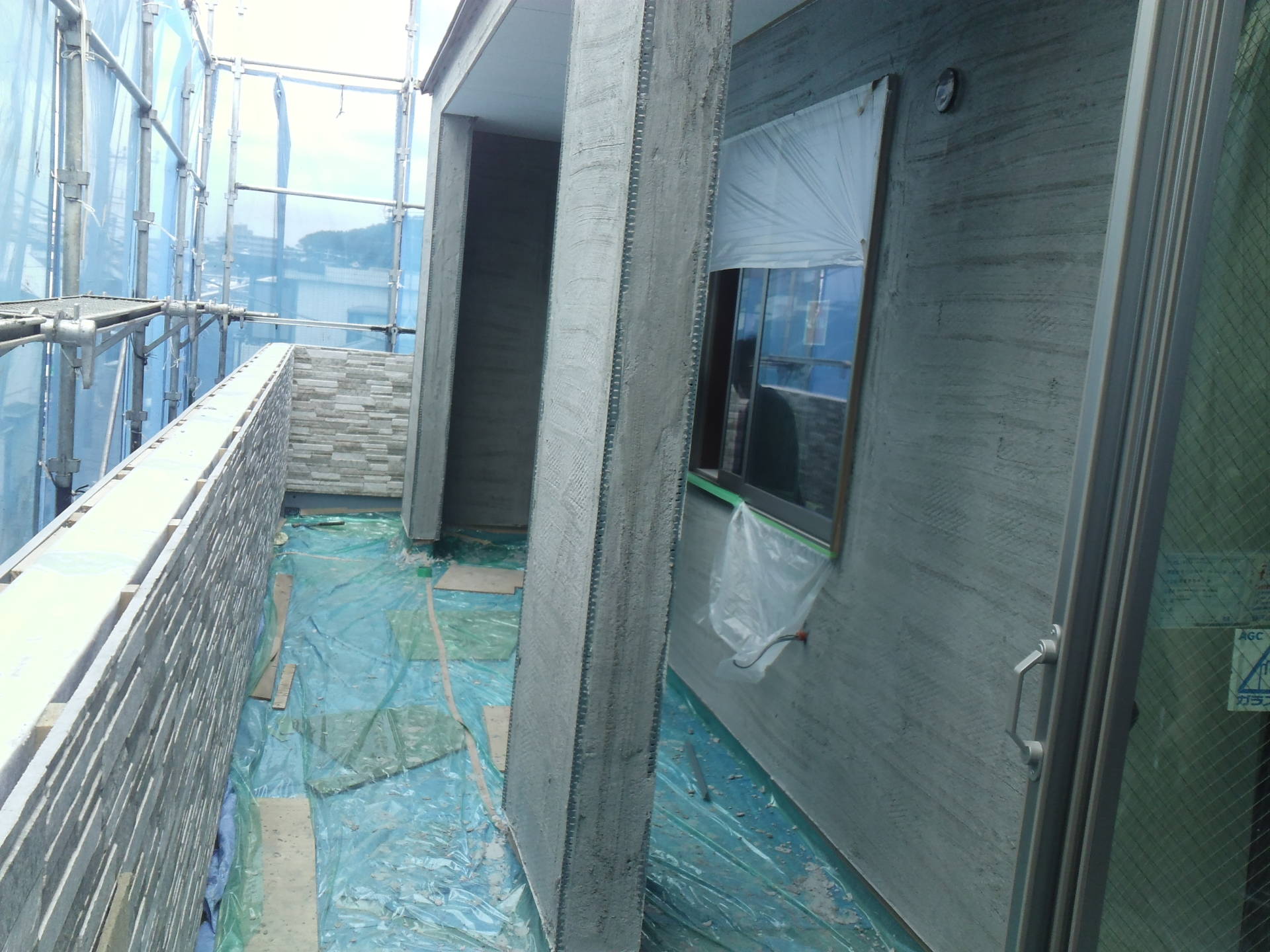 目黒区G邸賃貸併用住宅 2015年8月27日(木) バルコニーの手すり壁にはサイディングが施工されています。 右手の壁部分はタイル貼りになるのでラス網にモルタルが塗られています。 いずれの場合も外壁下地との間に通気層を設けて構造躯体に湿気をこもらせない仕組みです。 事業用住宅一覧に戻る 前の記事へ 次の記事へ 最新の投稿 目黒区I邸 断熱吹付け工事 目黒区A邸 ベタ基礎完成 目黒区A邸 べた基礎耐圧板 コンクリート打設工事 目黒区A邸 べた基礎配筋工事 目黒区I邸賃貸併用住宅 バルコニー防水工事