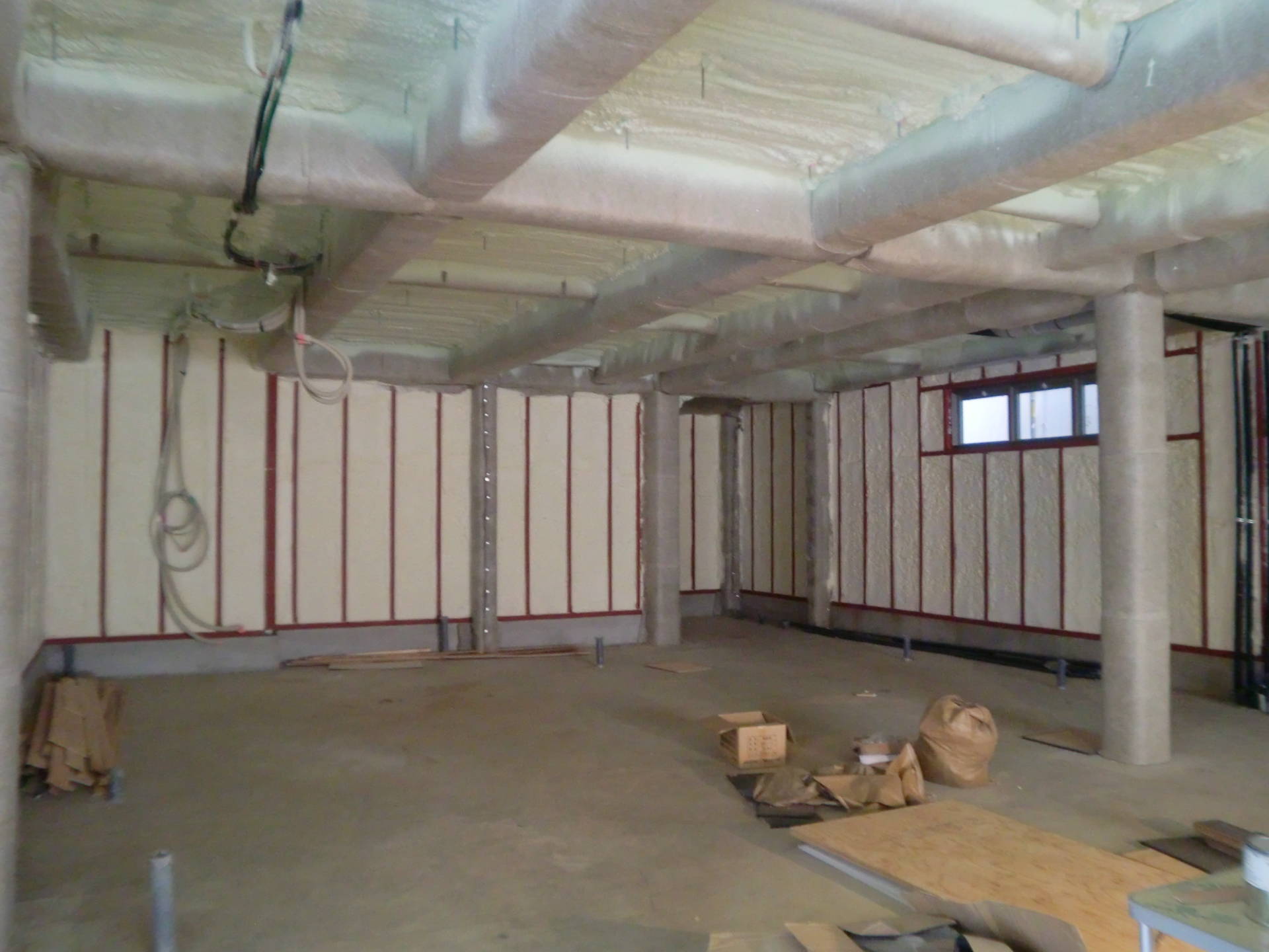 ニコマビル 断熱材吹付 2015年10月22日(木) 1階から3階まで発泡ウレタン断熱材の吹付工事が完了しました。 木材に吸着して発泡するため、高い気密性があり、断熱効果はもちろん、生活音を外にもらさない吸音効果もあります。 1階店舗部分 事業用住宅一覧に戻る 前の記事へ 次の記事へ 最新の投稿 目黒区I邸 断熱吹付け工事 目黒区A邸 ベタ基礎完成 目黒区A邸 べた基礎耐圧板 コンクリート打設工事 目黒区A邸 べた基礎配筋工事 目黒区I邸賃貸併用住宅 バルコニー防水工事