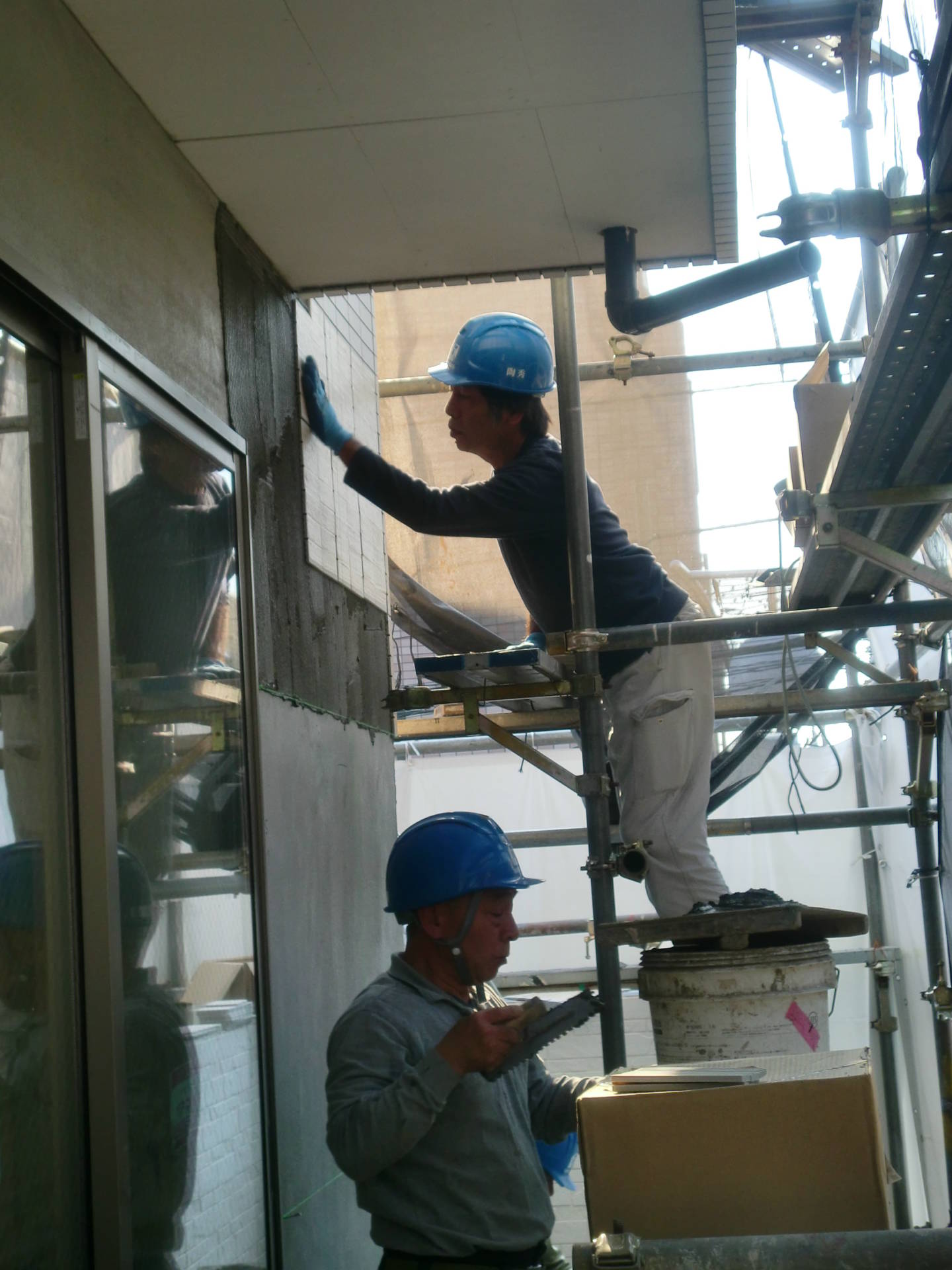 ニコマビル 外壁 2015年11月5日(木) 外壁タイルの施工中です。ラス網の上からモルタルを塗り、タイルを貼っていきます。 他でもそうですが、タイルはサイディングと併用することが多いです。コストはかかりますが、やはりタイルは重厚感があるので、建物の正面や往来の人の目によく触れる面に使います。 事業用住宅一覧に戻る 前の記事へ 次の記事へ 最新の投稿 目黒区I邸 断熱吹付け工事 目黒区A邸 ベタ基礎完成 目黒区A邸AP 基礎コンクリート打設完了 目黒区A邸AP 鉄骨土台施工 目黒区A邸 べた基礎耐圧板 コンクリート打設工事