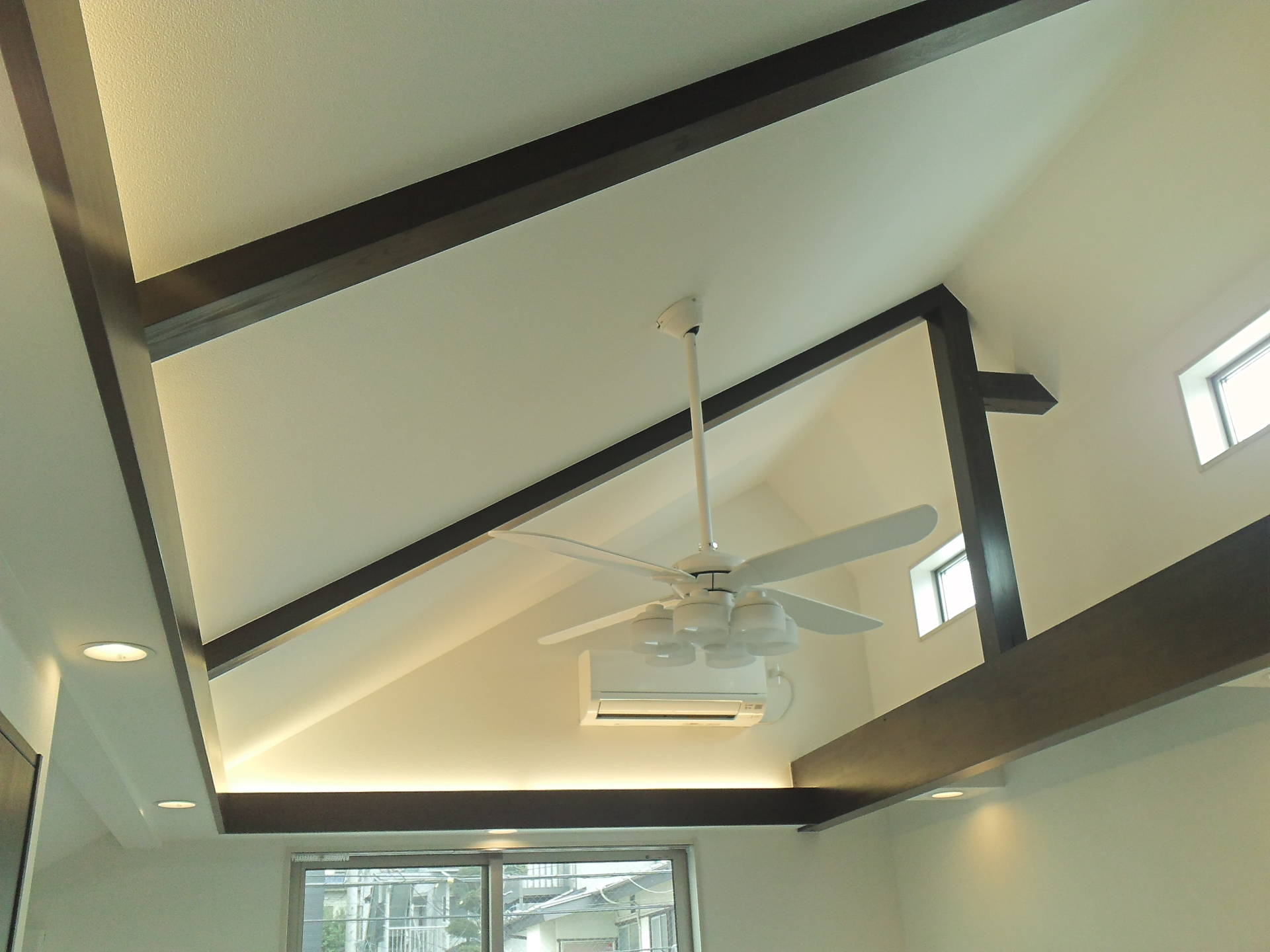 梁とライトデッキ。梁を塗装して引き締まった印象。