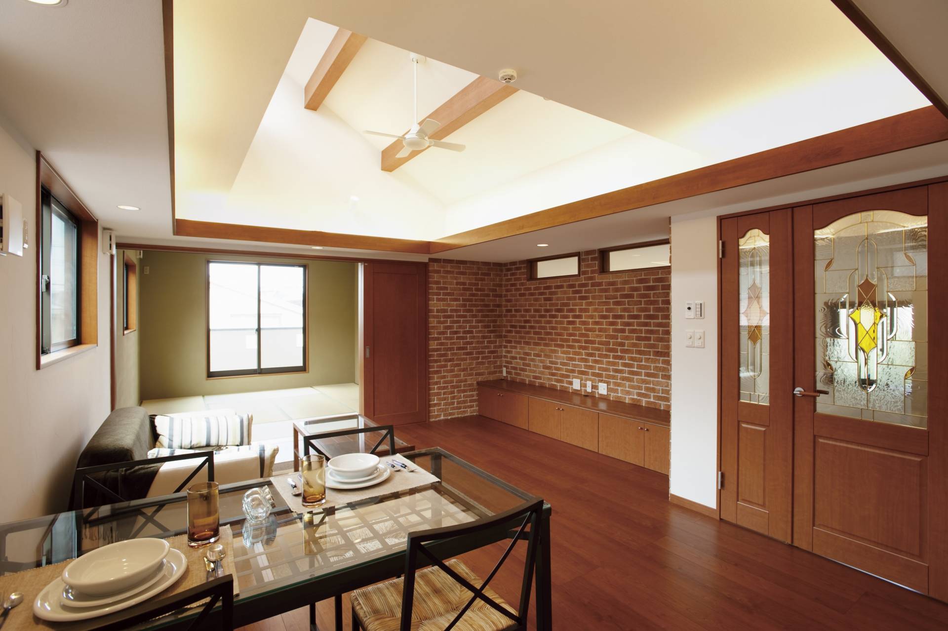 少し段差があるだけでも天井の圧迫感が抜けて、高くひろびろ感じられます。