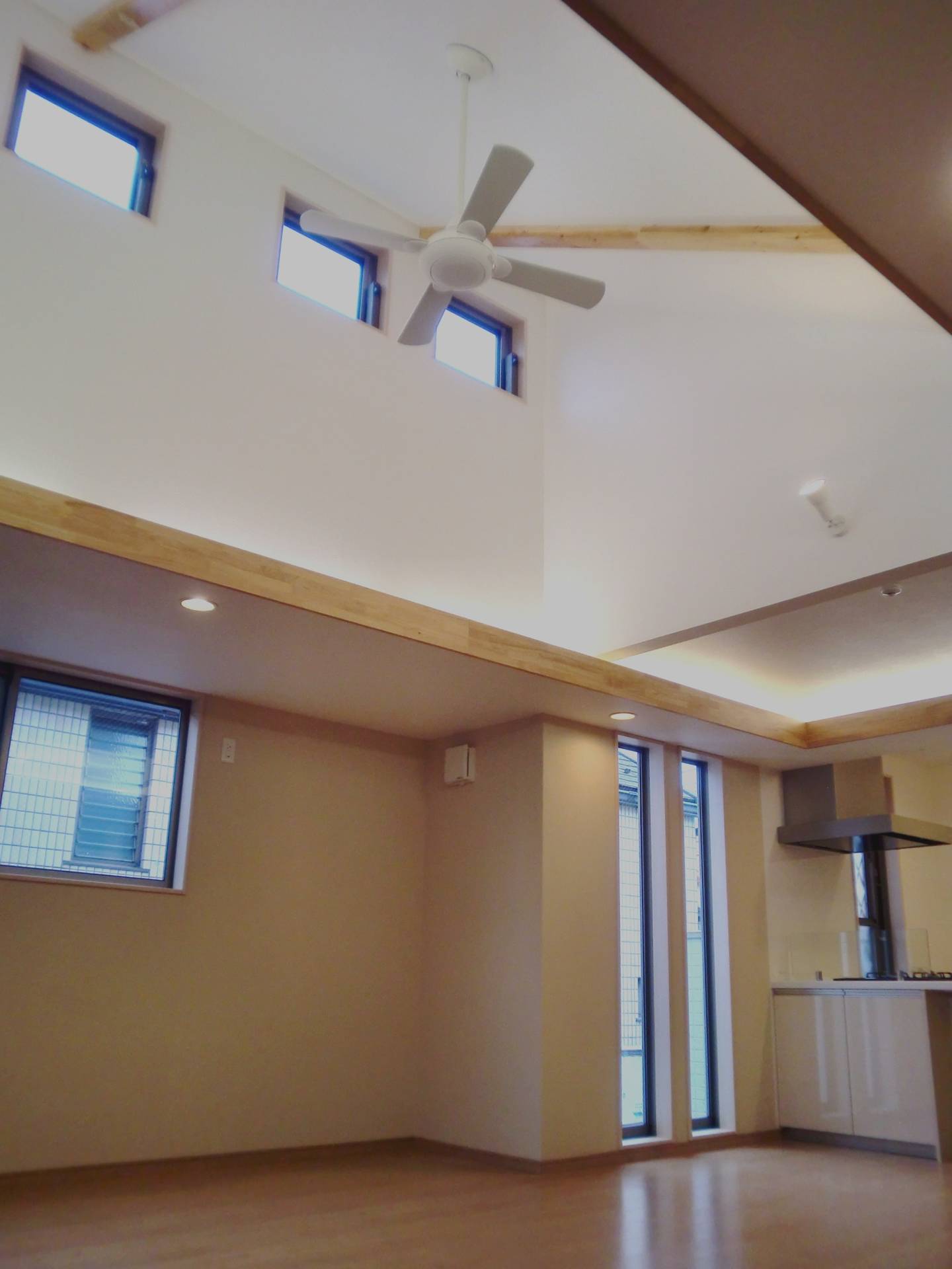 2階最上階のリビングの場合、天井を吹き抜けにするとライトデッキの効果が最大限発揮されます。