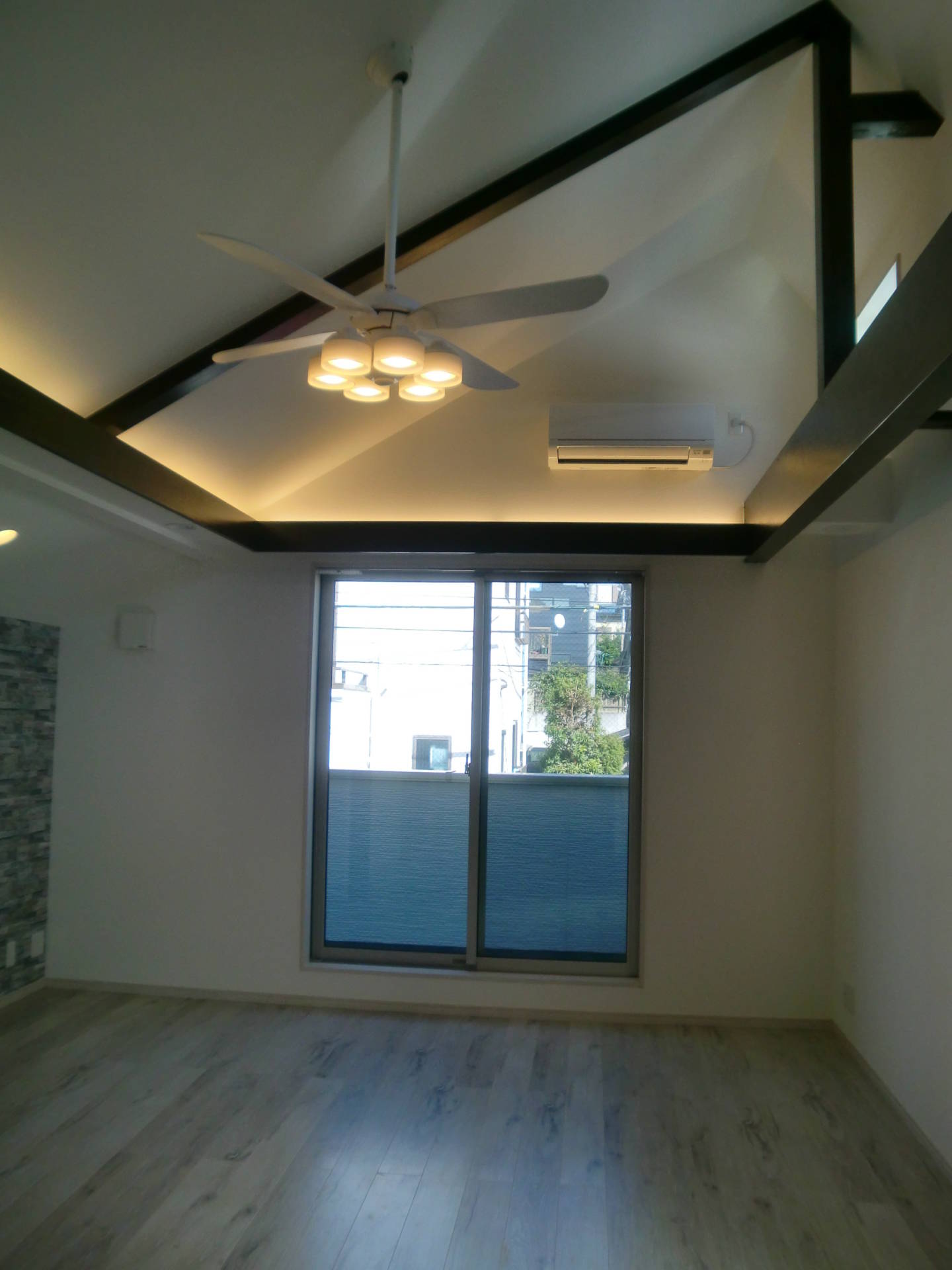 梁上に照明器具を設置した例です。梁を塗装して引き締まった印象に