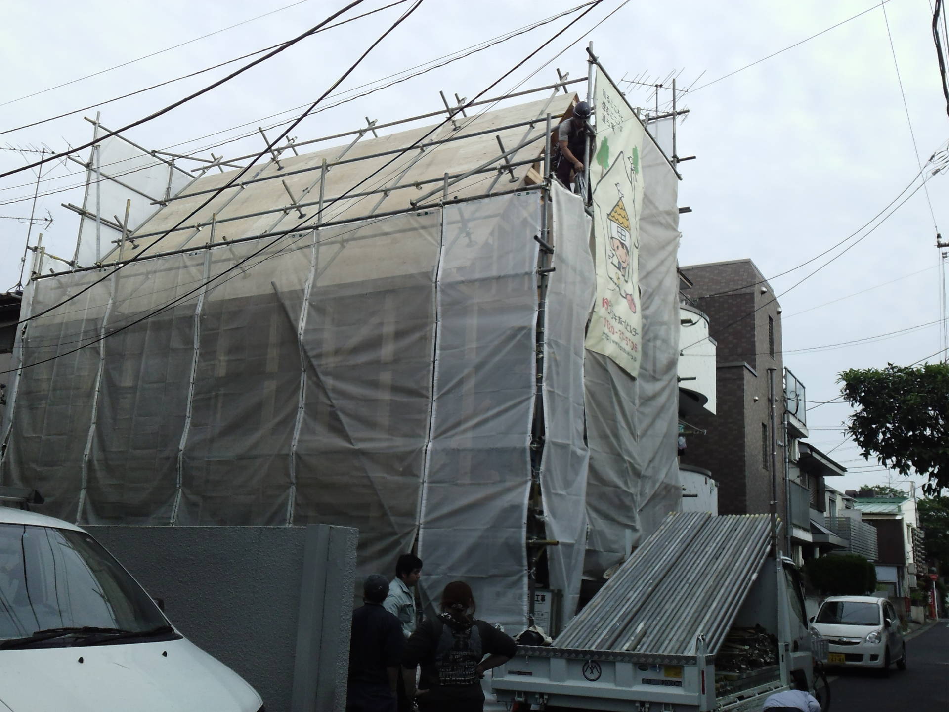 目黒区M邸 上棟 2016年5月21日(土) 一日で一気に上棟しました。 午後に上棟式がとりおこなわれ、施主様と職人の顔合わせをいたしました。 一階から2階、3階を見上げたところ。屋根裏の通気スペーサーが見えています。 注文住宅一覧に戻る 前の記事へ 次の記事へ 最新の投稿 目黒区I邸 断熱吹付け工事 目黒区A邸 ベタ基礎完成 目黒区A邸AP 基礎コンクリート打設完了 目黒区A邸AP 鉄骨土台施工 目黒区A邸 べた基礎耐圧板 コンクリート打設工事