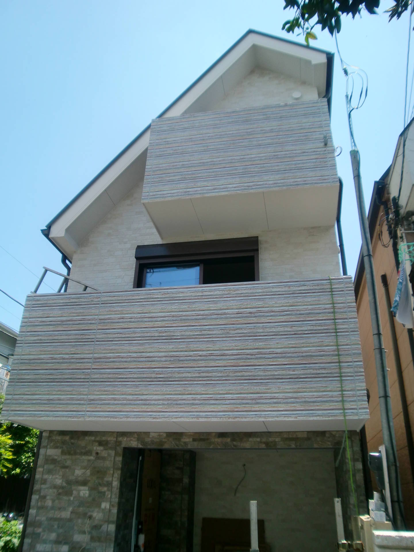目黒区M邸 シート外れました 2016年6月27日(月) 外壁工事が完了して養生シートがはずされました。 明るく楽しい配色の外観です。 サイディングのシーリング材は従来のものより耐久性が高くひびわれしにくい商品を使用しています。 内装では階段工事が進んでいます。 まずは踏み板から施工。2階まで入りました。 スケルトンのようになっていますが、階段下は収納になる予定なので、 このあと蹴りこみ板をいれて塞ぐことになります。 注文住宅一覧に戻る 前の記事へ 次の記事へ 最新の投稿 目黒区A邸 地鎮祭 目黒区A邸AP 地盤改良杭工事 目黒区I邸 基礎立ち上がり打設完了 目黒区I邸 配筋工事 品川区M邸 解体完了しました