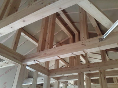 目黒区K邸AP2 木工事 2017年11月27日(月) 木工事が進んでいます。 まだ断熱の吹付を行っていないので、屋根の野地板の下の通気スペーサーが見えています。 段ボール製で軽量ですが、野地板との間に空気層をつくり、熱卯空気は上昇して換気口から排出されます。 ベランダのFRP防水も完了しています。 サッシ廻りのグリーンの部材は躯体への雨水の侵入を防止する重要な役割を担っています。 事業用住宅一覧に戻る 前の記事へ 次の記事へ 最新の投稿 目黒区I邸 断熱吹付け工事 目黒区A邸 ベタ基礎完成 目黒区A邸 べた基礎耐圧板 コンクリート打設工事 目黒区A邸 べた基礎配筋工事 目黒区I邸賃貸併用住宅 バルコニー防水工事