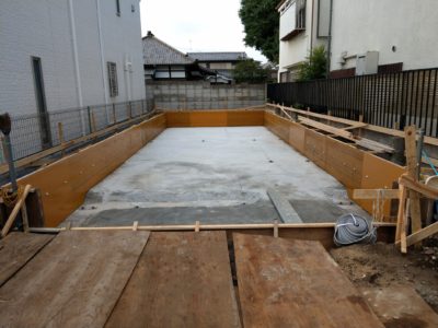 品川区K邸 捨コン 2018年7月9日(月) 基礎工事開始しました。捨コンの施工が完了しています。 すでに基礎の外周の型枠もたてられています。 これから配筋工事になります。 品川区K邸2018一覧に戻る 前の記事へ 次の記事へ 最新の投稿 品川区M邸 基礎立ち上がり木枠 品川区M邸 ベタ基礎配筋完了 目黒区A邸 断熱吹付け完了 目黒区I邸 足場がはずれました 目黒区A邸AP 下地ボード施工