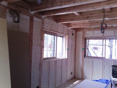 品川区F邸賃貸併用住宅 断熱材吹付 2018年7月23日(月) 断熱材の吹付が完了しています。 専門の職人さんが現場で吹付してその場で発泡、硬化するので、 壁下地材に密着して、すきまなく施工できます。 事業用住宅一覧に戻る 前の記事へ 次の記事へ 最新の投稿 A邸AP 鉄骨造 建方(たてかた) 目黒区I邸 断熱吹付け工事 目黒区A邸 ベタ基礎完成 目黒区A邸AP 基礎コンクリート打設完了 目黒区A邸AP 鉄骨土台施工