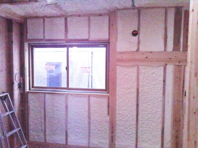 品川区K邸 ウレタン断熱吹付 2018年9月3日(月) 断熱材の吹付が完了しています。 当社では硬質発泡ウレタンを専門の業者さんが現場で吹付施工しており、 一日で断熱施工が完了します。 液状のウレタンが、吹き付けられると発泡してふくれていくので、 施工と同時に高い気密性が保持され、断熱材の性能がいかんなく発揮されます。 品川区K邸2018一覧に戻る 前の記事へ 次の記事へ 最新の投稿 品川区M邸 基礎立ち上がり木枠 品川区M邸 ベタ基礎配筋完了 目黒区A邸 断熱吹付け完了 目黒区I邸 足場がはずれました 目黒区A邸AP 下地ボード施工