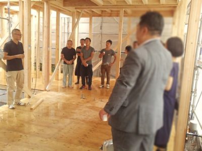 大田区M邸二世帯住宅 上棟式 2019年8月27日(火) 突然の豪雨にみまわれながらも、無事上棟式を執り行うことができました。 職人一同とお施主様の顔合わせの大切な機会です。 大田区M邸二世帯住宅2019一覧に戻る 前の記事へ 次の記事へ 最新の投稿 A邸AP 鉄骨造 建方(たてかた) 目黒区I邸 断熱吹付け工事 目黒区A邸 ベタ基礎完成 目黒区A邸AP 基礎コンクリート打設完了 目黒区A邸AP 鉄骨土台施工