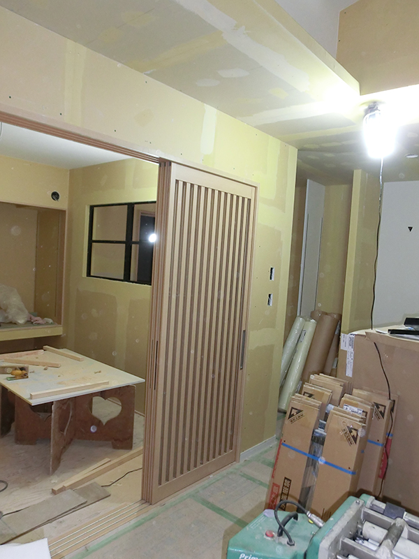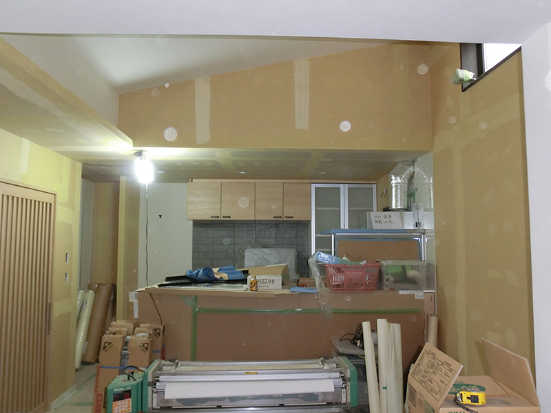 品川区S邸 内装工事 2022年4月17日(日) 内部の設備工事が進んでいます。 傾斜天井を活かしたから高窓から光がいっぱい差し込むLDK キッチン施工が完了しています。 リビング横の和室は建て格子の引き戸と室内窓がポイントです。 階段下に収納を設けます 品川区S邸202107一覧に戻る 前の記事へ 次の記事へ 最新の投稿 目黒区I邸 断熱吹付け工事 目黒区A邸 ベタ基礎完成 目黒区A邸AP 基礎コンクリート打設完了 目黒区A邸AP 鉄骨土台施工 目黒区A邸 べた基礎耐圧板 コンクリート打設工事
