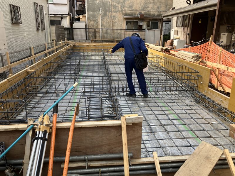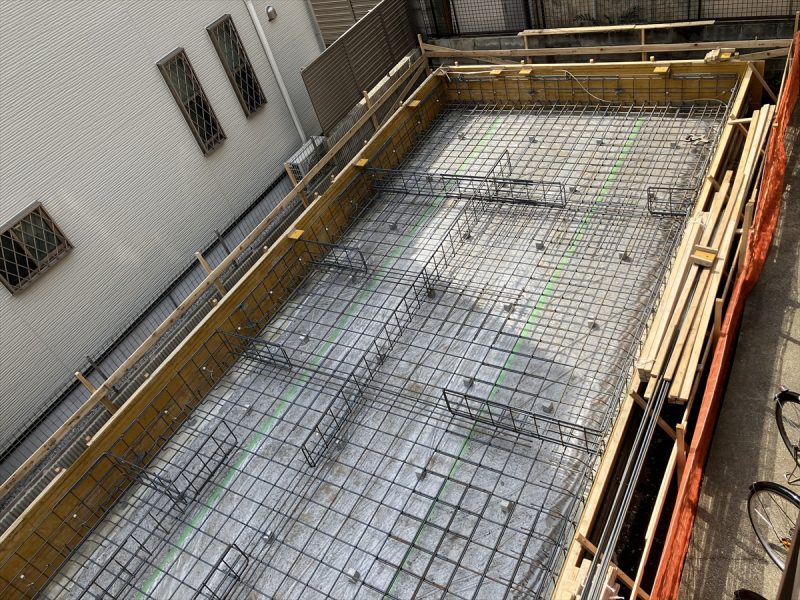 目黒区I邸 基礎配筋検査 2025年4月18日(金) ベタ基礎の配筋工事が完了して、本日は配筋検査です。 鉄筋の配置や間隔、継手などが正しく配置されているかなど、第三者機関の確認が入ります。 目黒区I邸202502一覧に戻る 前の記事へ 次の記事へ 最新の投稿 目黒区I邸 断熱吹付け工事 目黒区A邸 ベタ基礎完成 目黒区A邸 べた基礎耐圧板 コンクリート打設工事 目黒区A邸 べた基礎配筋工事 目黒区I邸賃貸併用住宅 バルコニー防水工事