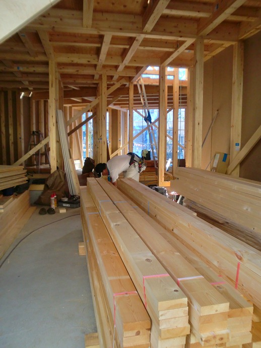 耐力壁 2012年8月27日(月) 壁がはいりました。novopan 耐力壁です。 2階は明日サッシが入るということで窓の部分をのこぎりで切開・・暑いですが雨の心配がないのは助かります。 ベランダ 目黒区目黒本町K事務所一覧に戻る 前の記事へ 次の記事へ 最新の投稿 目黒区I邸 断熱吹付け工事 目黒区A邸 ベタ基礎完成 目黒区A邸 べた基礎耐圧板 コンクリート打設工事 目黒区A邸 べた基礎配筋工事 目黒区I邸賃貸併用住宅 バルコニー防水工事