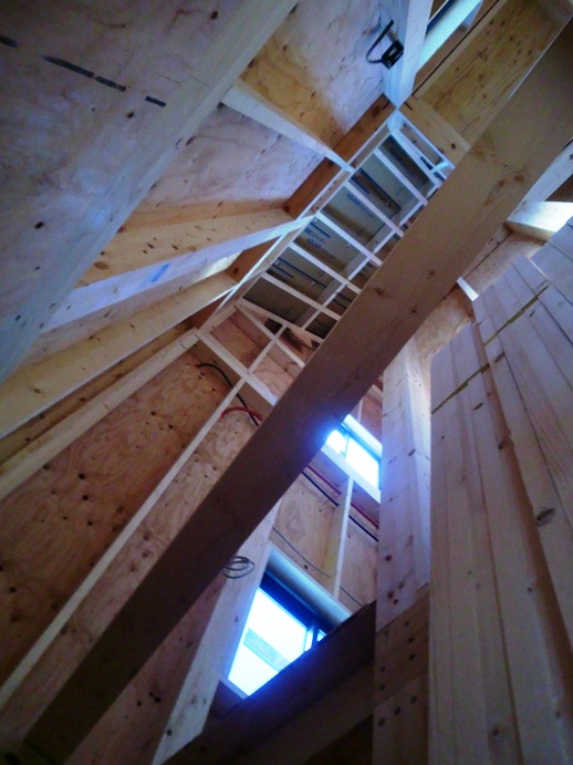 1階の階段ホールから3階の天井を見上げたところ。さすがに3階は高い!