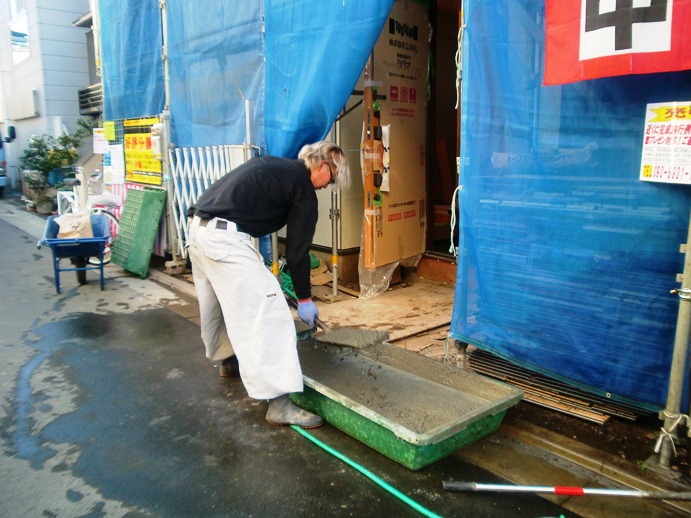 この日、玄関たたきの土間コンクリート工事も行われています。