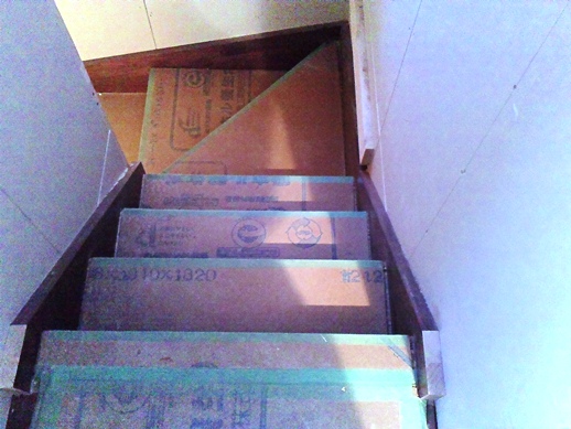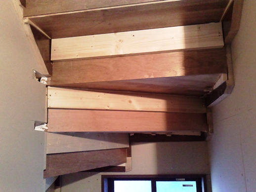 階段の裏側です。この部分は下地ボードがはられて隠れるところです。