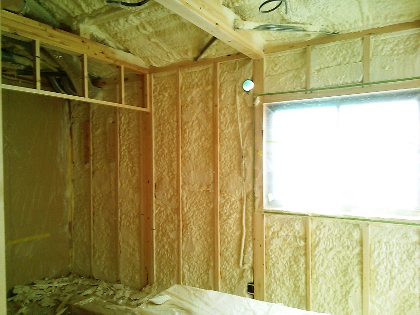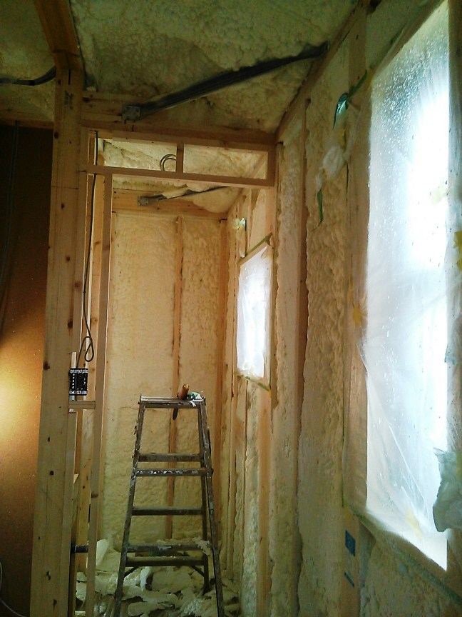 発泡ウレタン断熱材 2013年4月4日(木) 断熱材の施工です。水を使用して硬質ウレタンを発泡させるアクアフォームを使用しています。現場で構造材の内側、外壁に接する部分に吹き付けていくので、あらゆる凹凸に対応でき、すきまを作りません!これで魔法瓶のような保温効果が可能となるのです。また木材などに自着する性質があるので、構造材の補強をする効果もあります。成型されたグラスウールと比べても湿度の影響も受けにくく、壁内で下垂して効果が下がる心配もありません。 新宿区K邸共同住宅一覧に戻る 前の記事へ 次の記事へ 最新の投稿 目黒区I邸 断熱吹付け工事 目黒区A邸 ベタ基礎完成 目黒区A邸AP 基礎コンクリート打設完了 目黒区A邸AP 鉄骨土台施工 目黒区A邸 べた基礎耐圧板 コンクリート打設工事