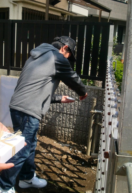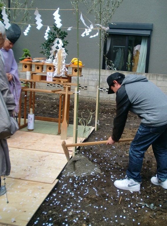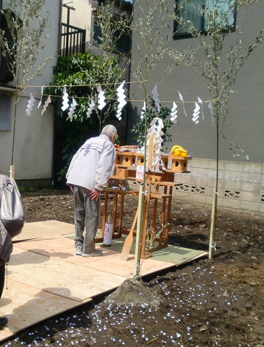 地鎮祭 2013年4月15日(月) 4月5日、地鎮祭が執り行われました。 土地の四隅のお払いとお清めを済ませ、 土地の神様を鎮める鍬入れの儀を執り行い 祭壇に玉ぐしを捧げて工事の無事を祈祷していただきました。 いよいよ基礎工事にかかります。 品川区小山K邸一覧に戻る 前の記事へ 次の記事へ 最新の投稿 目黒区I邸 断熱吹付け工事 目黒区A邸 ベタ基礎完成 目黒区A邸 べた基礎耐圧板 コンクリート打設工事 目黒区A邸 べた基礎配筋工事 目黒区I邸賃貸併用住宅 バルコニー防水工事