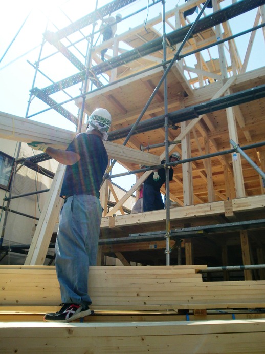 屋根垂木まで 2013年5月9日(木) 午後イチ、もう屋根まで進んでいます。屋根垂木が運びあげられて組まれていきます。屋根には、野地板の下に「通気スペーサー」を施工して通気を確保します。 品川区小山K邸一覧に戻る 前の記事へ 次の記事へ 最新の投稿 目黒区I邸 基礎工事 目黒区I邸 地盤調査 目黒区I邸 地鎮祭 横浜市港北区T邸 目黒区M邸 完成お引渡し